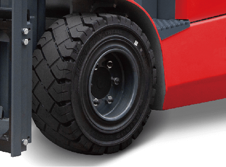 Spezieller Vollreifen für Elektrostapler mit niedrigem Rollwiderstand reduziert den Fahrwiderstandsverbrauch.