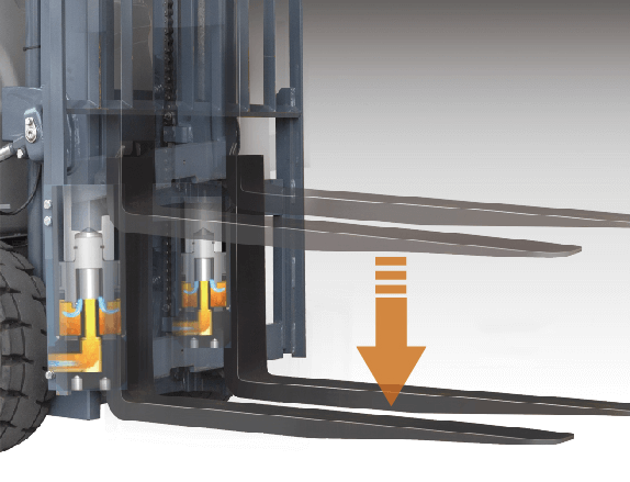 - Intelligentes Stabilisierungssystem: Es kann den Neigungswinkel (Magnetventilkonfiguration) und die Geschwindigkeit des Mastes automatisch an die Hubhöhe und den Lastzustand anpassen. Die hohe Tragfähigkeit und die Stapelsicherheit des Fahrzeugs werden verbessert;